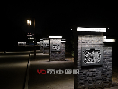 重點(diǎn)照明區(qū)主要表現(xiàn)中軸線上的建筑,以泛光照明為主要設(shè)計(jì)手法,通過LED洗墻燈照亮瓦面、屋面、檐口、斗拱等構(gòu)建,突出建筑本身的美感,局部細(xì)節(jié)通過點(diǎn)光源突出,豐富整體視覺效果,不過度照明,烘托整個(gè)寺院的靜謐感。