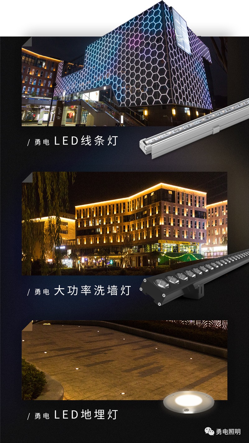 東城時代夜景照明大量采用了勇電二次封裝LED戶外照明產(chǎn)品,燈光整體以暖基調(diào)為主,因地制宜,動靜結(jié)合,同時燈光亮度分了三個級別,以確保商業(yè)氛圍及良好的照明印象。