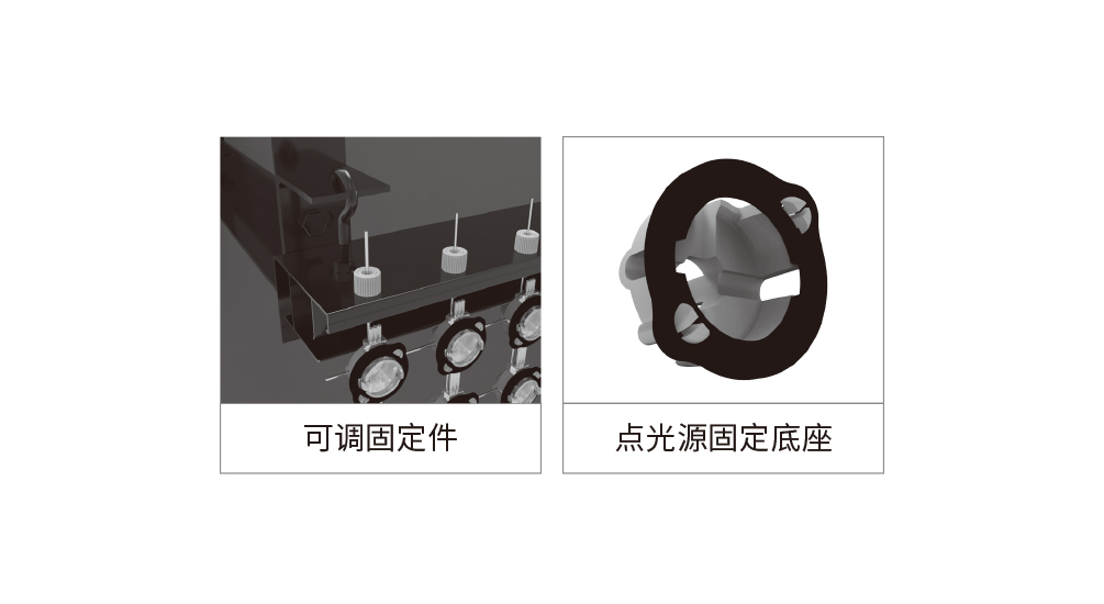 1、使用不銹鋼絲網(wǎng)作為光源固定。 2、采用二次封裝點(diǎn)光源配合塑膠固定件安裝。 3、易安裝、運(yùn)維、運(yùn)輸。