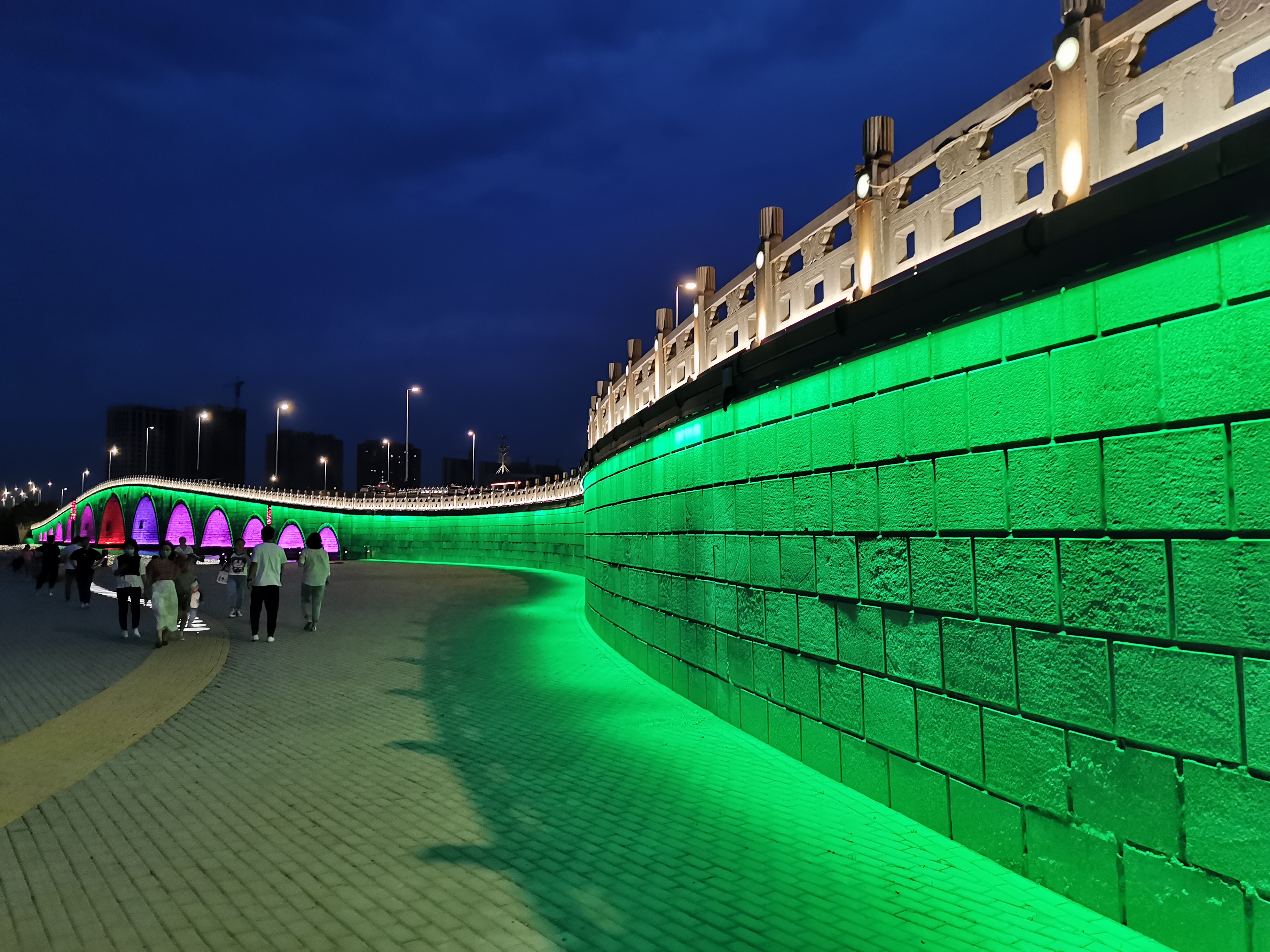 通常將洗墻燈安裝于沿河堤岸或護(hù)坡上部,通過從上往下的一種打光形式將被照面打亮的一種裝燈方式。